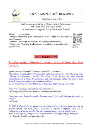 Une rencontre de caté autour de la Toussaint pour l'enfance - niveau primaire est proposée ici : https://catechese.cathocambrai.com/chemin-vers-saintete-une-rencontre-cate-pour-enfance.html