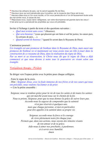 En partant de cet appel et du récit des Béatitudes, cette rencontre de caté simple à mettre en oeuvre nous invite à y répondre pour devenir à notre tour des saints et des saintes de Dieu.