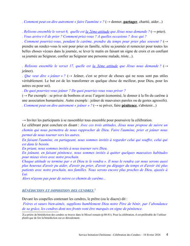 Voici une proposition (identique à celle de l'an dernier) pour animer une célébration des Cendres non-eucharistique.