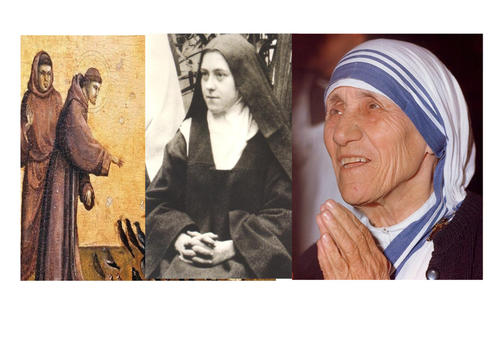 Ste Thérèse de l'enfant Jésus, St François d'Assise et ste Mère Térésa nous montrent le chemin de la sainteté.
