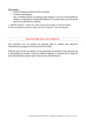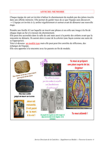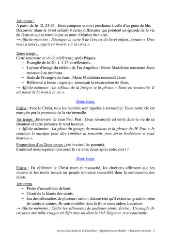 "Traverser la mort" peut être vécu toute l'année. Néanmoins, il trouve toute sa place au moment de la Toussaint lorsque nous découvrons la communion des saints mais aussi avant Pâques et pendant le temps pascal puisque nous parlons de la résurrection du Seigneur.