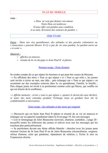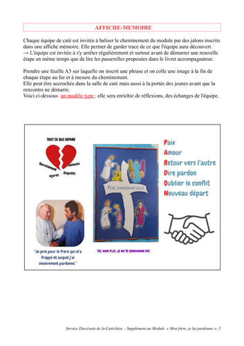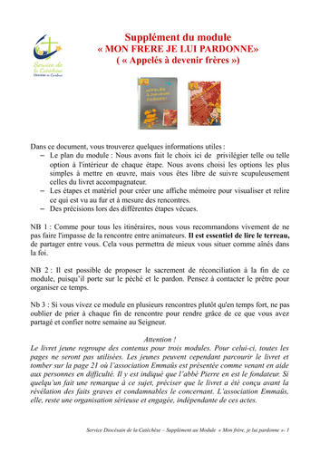 Nous vous proposons ci dessous (téléchargeable en bas de la page) un supplément qui vous permetta d'appréhender plus facilement et accompagner le module "Mon frère, je lui pardonne" :