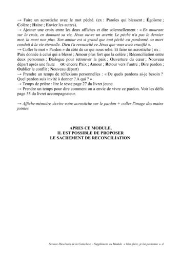 Le module "Mon frère je lui pardonne" peut être vécu toute l'année mais il peut aussi préparer au sacrement de réconciliation.