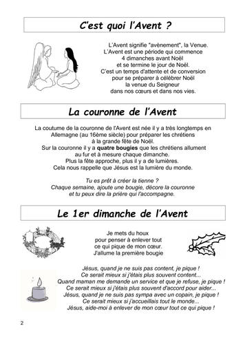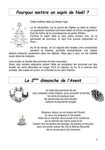 - des indications pour créer sa couronne de l'Avent pendant les 4 dimanches, avec une prière à dire en famille.