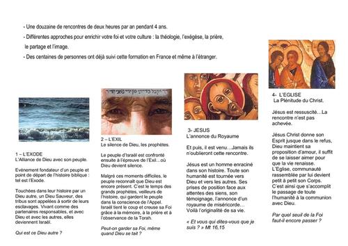 Pour des chrétiens adultes désireux de faire le point sur leur foi, d'approfondir leur foi, d'aller aux sources de la foi, d'entrer dans la Bible et l'histoire sainte, de comprendre l'actualité de la Bible.